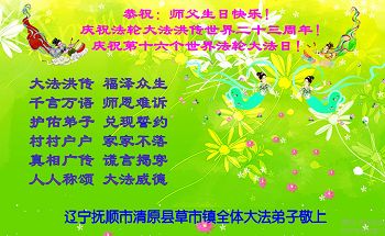 辽宁省抚顺市清原县草市镇全体大法弟子恭祝师父生日快乐!庆祝法轮大法洪传世界二十三周年!庆祝世界法轮大法日!
