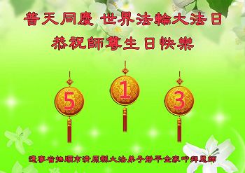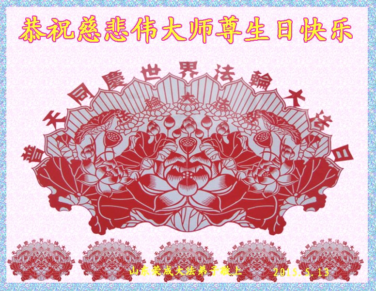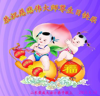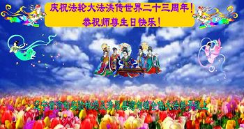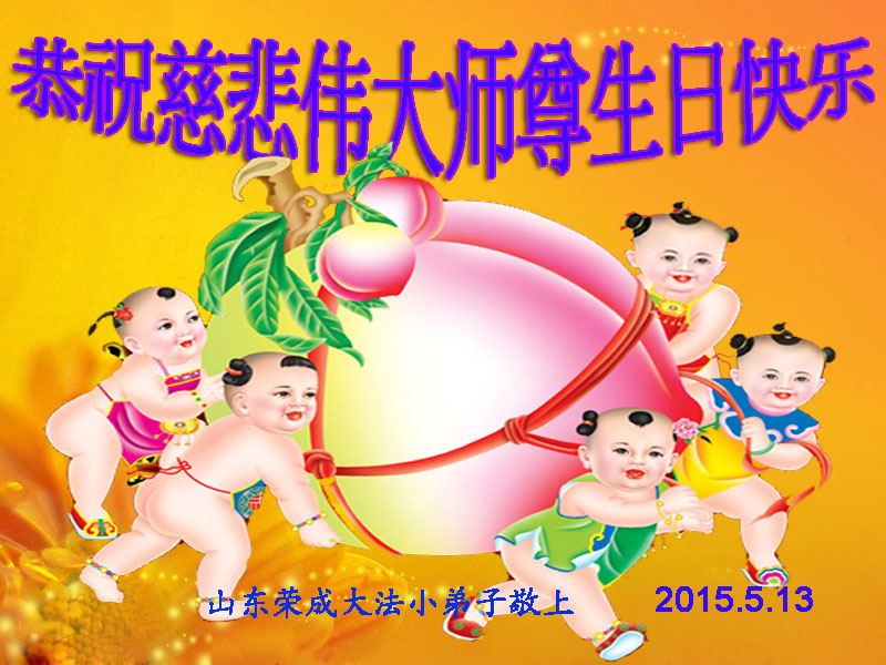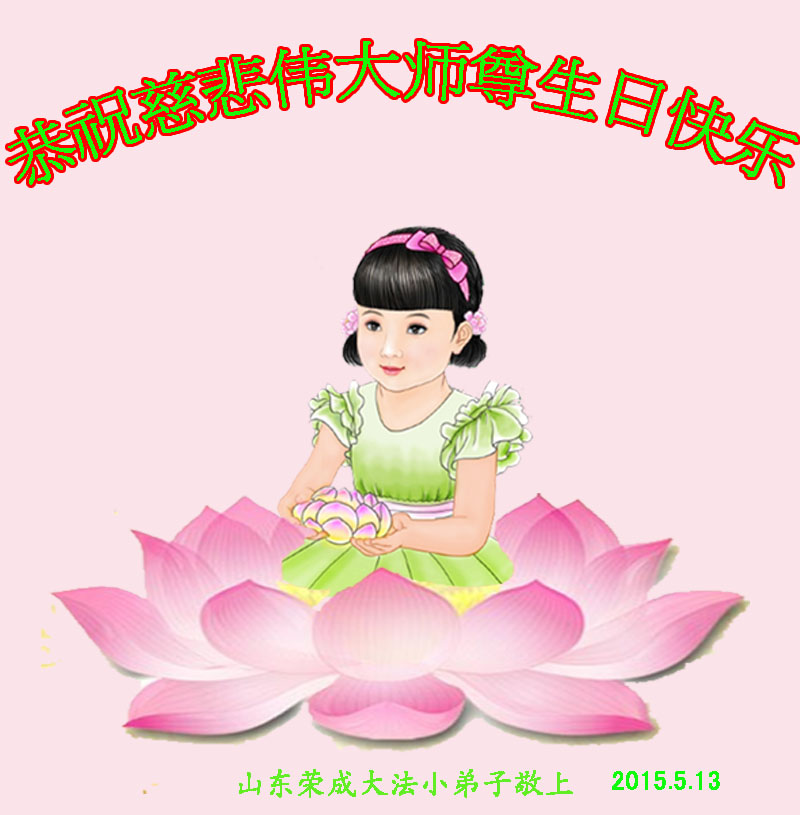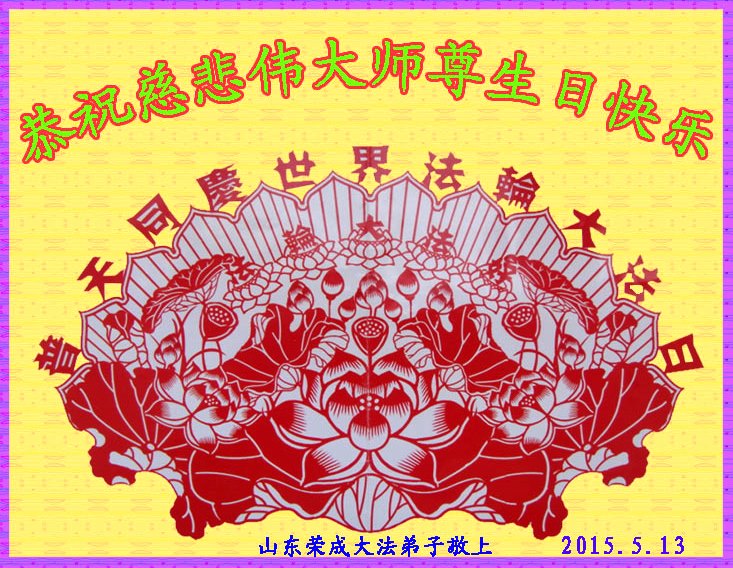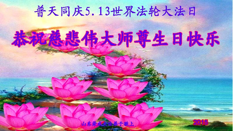 山东省威海市荣成市大法弟子恭贺五•一三世界法轮大法日!同庆法轮大法洪传二十三周年!恭祝慈悲伟大的师尊生日快乐!