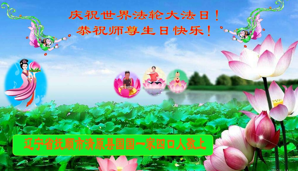 辽宁省抚顺市清原县大法弟子国国一家四人恭祝师尊生日快乐!庆祝世界法轮大法日!
