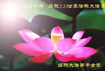 一个大陆大法学员 代表全家,泪流满面,深深的恭祝师尊生日好! 天津市南开区大法弟子恭祝师父生日快乐!