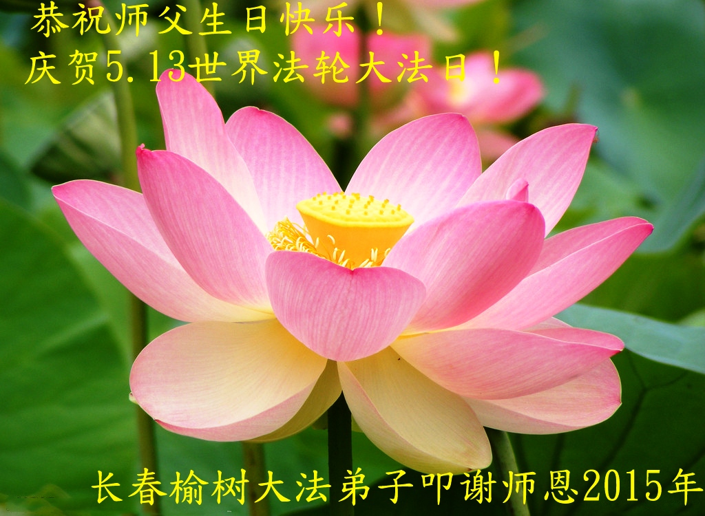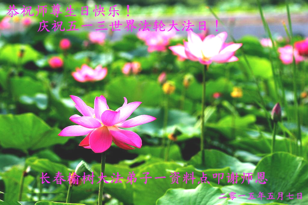 恭祝师尊生日快乐!普天同庆世界法轮大法日! 招远大法弟子想念师尊,我们会共同精進,救度世人。 招远东部大法弟子敬上 二零一五年五月六日 吉林省长春市榆树市大法弟子恭祝师尊生日快乐!
