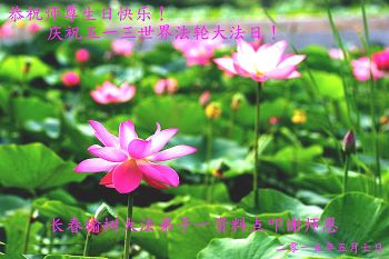 普天同庆世界法轮大法日! 黑龙江农垦系统大法弟子 山东滨州市滨城区大法弟子一家恭祝师父生日快乐!恭贺世界法轮大法日!