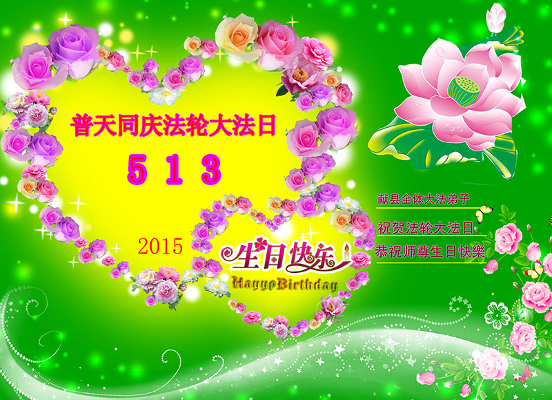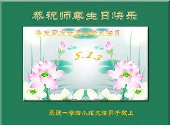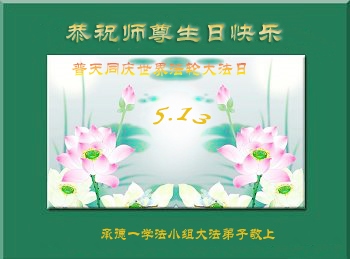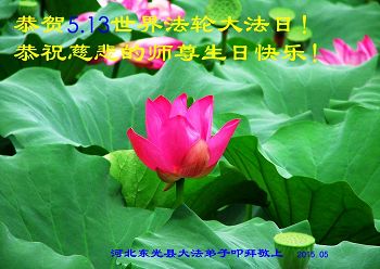 【明慧网二零一五年五月十二日】 河北省承德两资料点大法弟子恭贺慈悲伟大的恩师生日快乐!庆贺世界法轮大法日!
