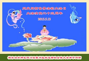 被非法关押在四川省嘉州监狱迫害的全体大法弟子同庆同贺世界法轮大法日!恭贺大法洪传二十三周年!