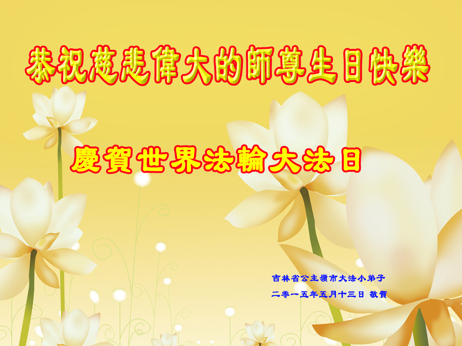 吉林省四平市公主岭市大法小弟子恭祝慈悲伟大的师尊生日快乐!庆贺世界法轮大法日!
