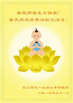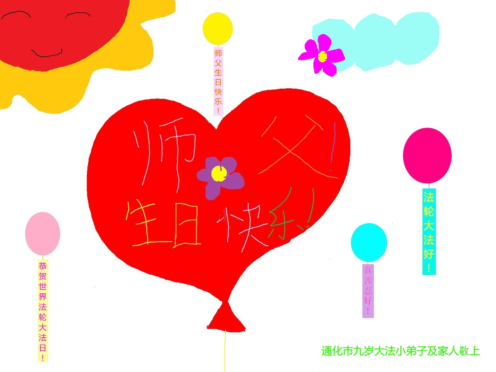 河北衡水十岁大法小弟子恭祝师尊生日快乐!祝贺法轮大法洪传二十三周年!
