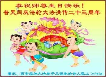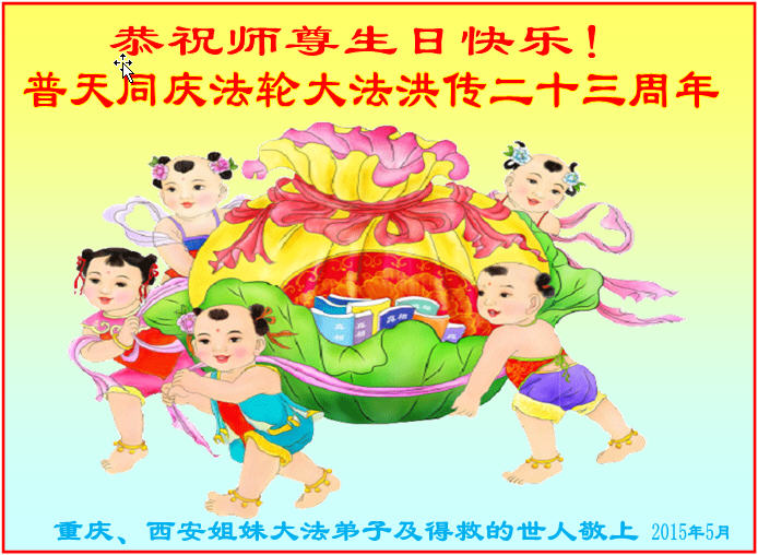 重庆、西安姐妹大法弟子及得救的世人恭祝师尊生日快乐!普天同庆法轮大法洪传二十三周年!