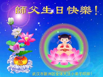 师尊您好,谢谢您的救度之恩合十跪拜。 湖北省武汉市新洲区全体大法小弟子恭祝慈悲伟大的师尊生日快乐!