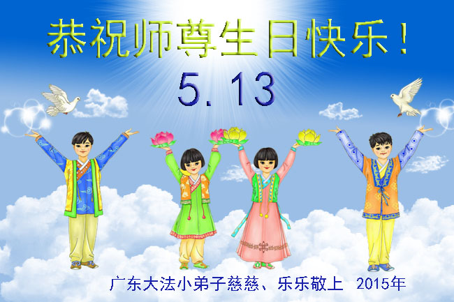广东大法小弟子慈慈、乐乐恭祝师尊生日快乐!