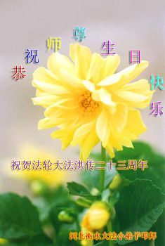 在五月十三日师尊诞辰这特殊的日子里,弟子们感恩心情无法言表,我们只能说:师尊您辛苦了!您为众弟子们付出的太多太多。我们只有听师尊的话,信师信法,学好法,在实修中做好三件事,多救度众生。放下自我,同修们配合好,做到整体提高,整体升华。跟上正法進程,走好最后正法路! 黑龙江哈尔滨市教育界系统大法弟子恭祝师父生日快乐!