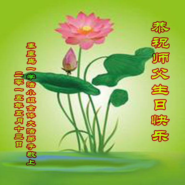 在2015年世界法轮大法日即将到来时,弟子学好法,多救人,紧跟正法進程,做好三件事,更加精進,早日跟师父回家。向慈悲伟大的师尊叩拜合十! 河北省秦皇岛市海港区一学法小组大法弟子恭祝师尊生日快乐!