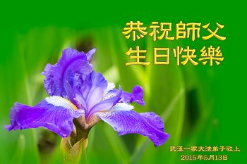 弟子和女儿同修以诚挚纯净的心恭祝慈悲伟大的师尊生日快乐!恭贺法轮大法弘传23周年!在普天同庆的大喜日子里,弟子们叩拜师父!感恩师父的慈悲苦度!师父辛苦了!请师父放心,我们虽说得法迟,但我们会努力精進做好三件事,信师信法,坚定不移的跟着师父圆满回家! 湖南长沙大法弟子叩拜 二零一五年五月六日 湖南长沙一学法小组大法弟子恭贺法轮大法日