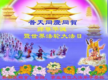 湖北省武汉市新洲区粮食、金融、事业单位大法弟子恭贺世界法轮大法日!