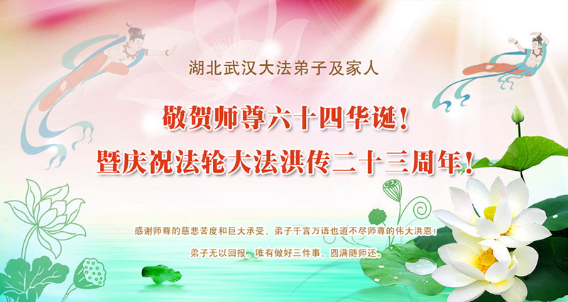 弟子们叩谢师恩! 湖北省武汉一家大法弟子恭祝师尊华诞暨世界法轮大法日!
