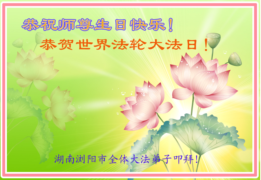 湖南省长沙市浏阳市全体大法弟子恭祝师尊生日快乐! 恭贺世界法轮大法日!