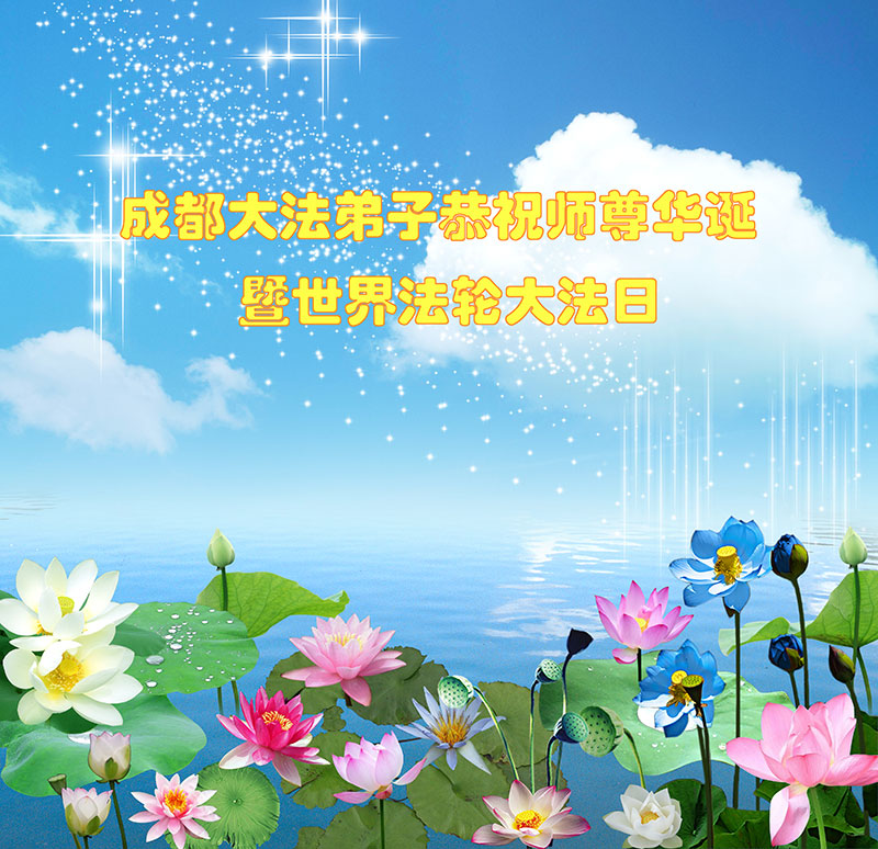 四川省成都大法弟子热烈恭贺第十六届世界法轮大法日暨师尊华诞!