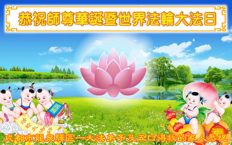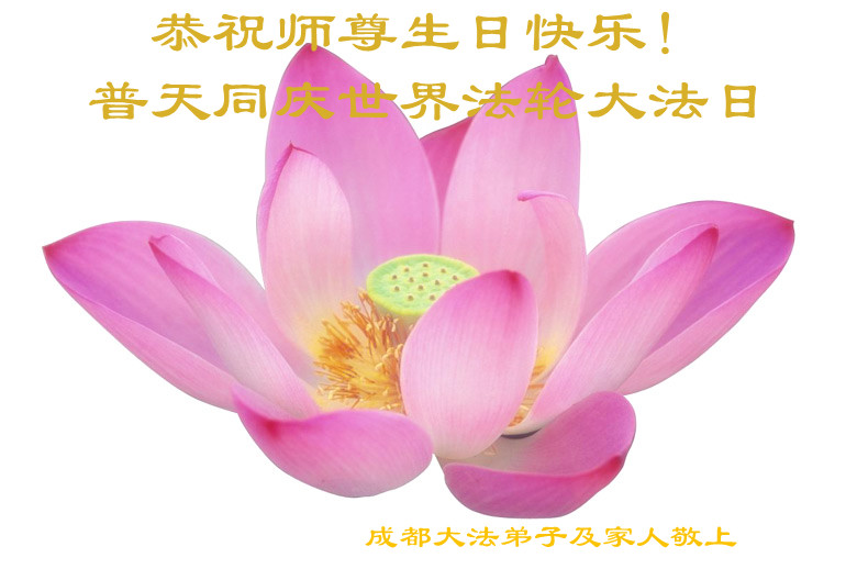 四川省成都全体大法弟子恭贺大法洪传23周年暨师父华诞!衷心祝愿慈悲伟大的师尊生日快乐!