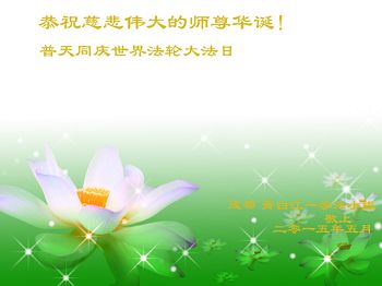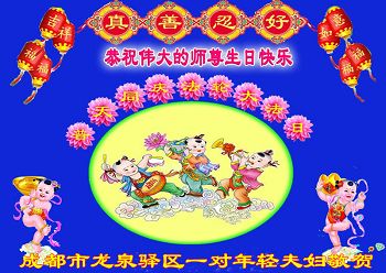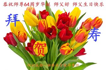 师尊辛苦了!祝师尊世界法轮大法日快乐!叩拜师恩! 四川成都双流县大法弟子恭祝师尊生日快乐!