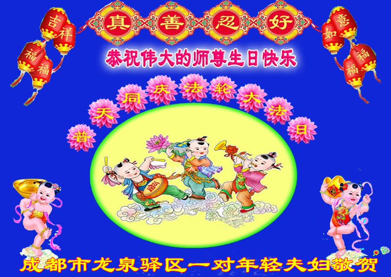 四川省成都市龙泉驿区一对年轻夫妇大法弟子普天同庆法轮大法日!恭祝伟大的师尊生日快乐!