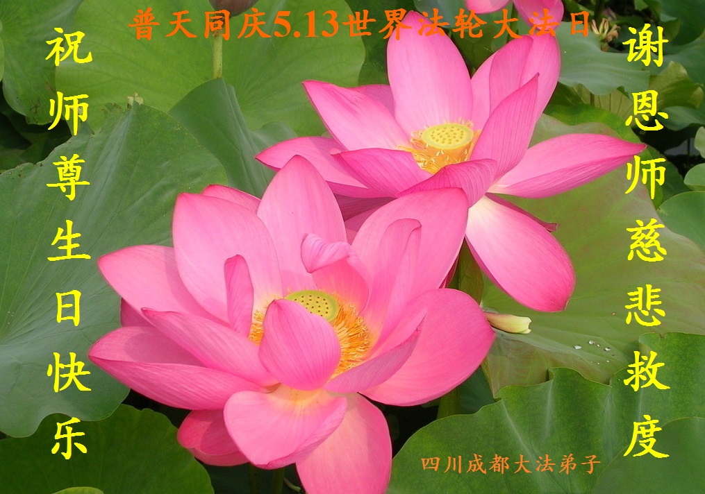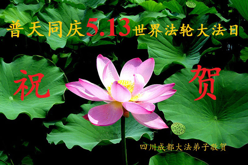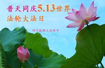 在庆祝五一三世界法轮大法日之际,成都全体大法弟子感恩师尊佛恩浩荡。我们一定会更加努力做好三件事,学好法,讲清真相,多救人,请师尊放心。在最后的日子里我们会精進实修,严格要求自己完成史前洪愿。 恭贺世界法轮大法日恭祝慈悲伟大的师尊华诞!