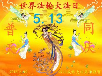 四川省成都大法弟子恭祝师尊华诞暨世界法轮大法日!