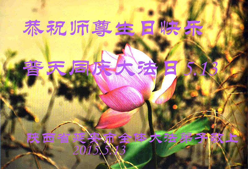 【明慧网二零一五年五月十二日】 陕西铜川大法弟子恭祝慈悲伟大的师尊生日快乐!