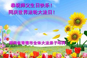 湖南省常德市全体大法弟子恭祝师父生日快乐!同庆世界法轮大法日!