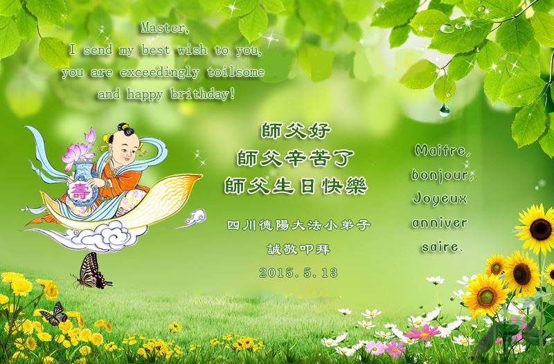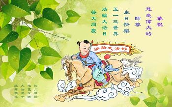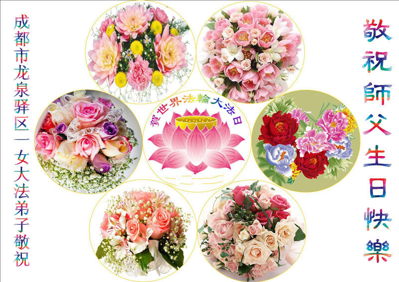 成都市龙泉驿区一女大法弟子敬祝恩师生日快乐!庆祝大法洪传二十三周年暨世界法轮大法日!