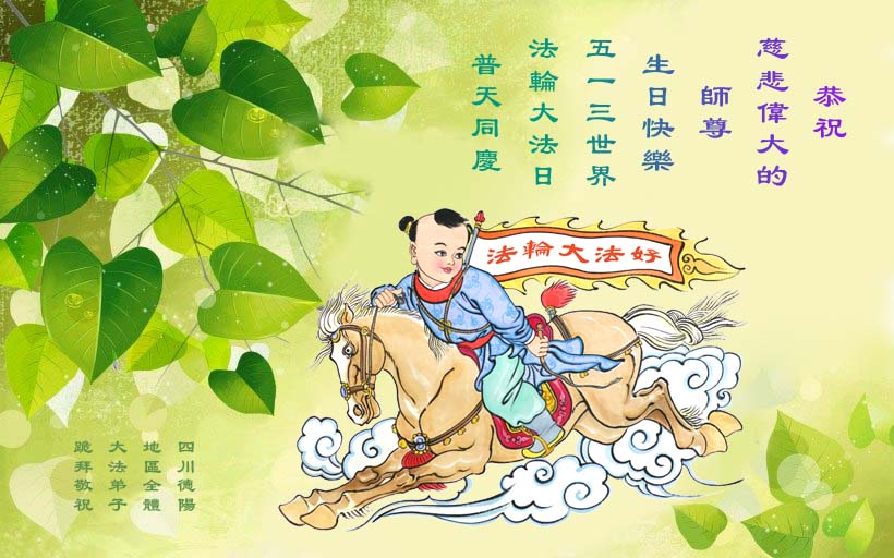 四川德阳地区全体大法弟子和小弟子恭祝师尊生日快乐!恭贺五一三世界法轮大法日!