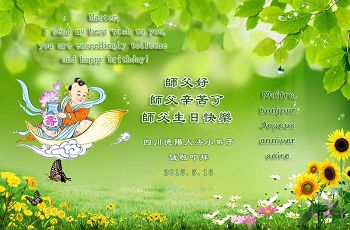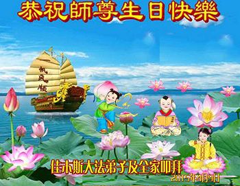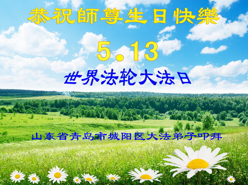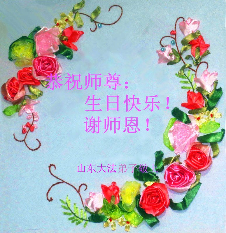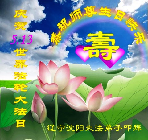 师尊您好!您辛苦了! 弟子感恩师尊的慈悲救度!恭祝恩师生日快乐!弟子盼望《神韵》早回大陆巡演,在神州大地上再现神传文化的辉煌。在剩下不多的时间里,弟子一定不辜负师尊的重托,做好三件事,尽力救度更多众生,随师回家。 山东省青岛市城阳区大法弟子恭祝世界法轮大法日暨师尊华诞!