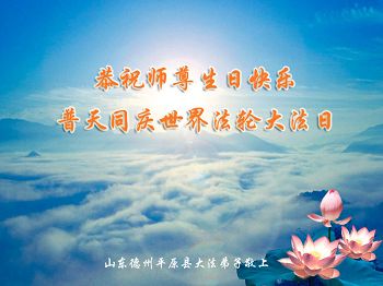 山东德州平原县大法弟子恭祝师尊生日快乐!普天同庆世界法轮大法日!