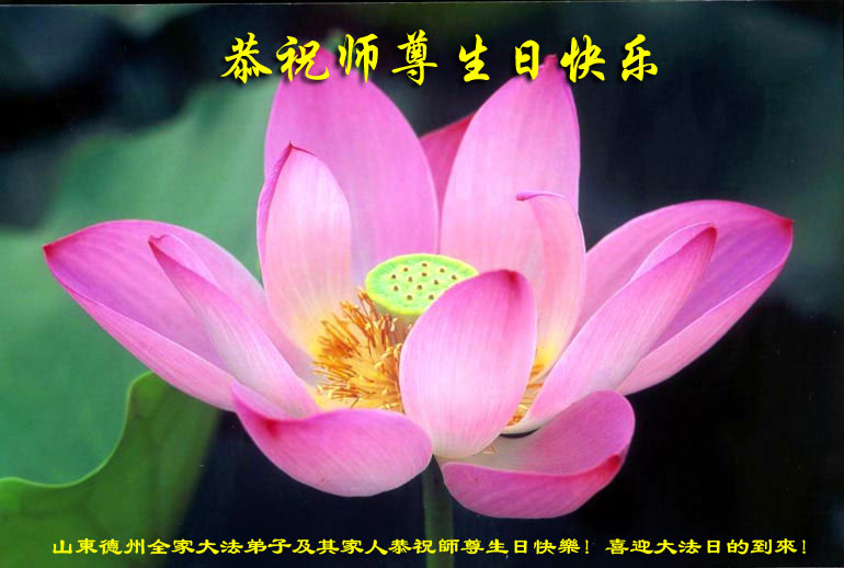 山东德州全家大法弟子及其家人恭祝师尊生日快乐!喜迎大法日的到来!
