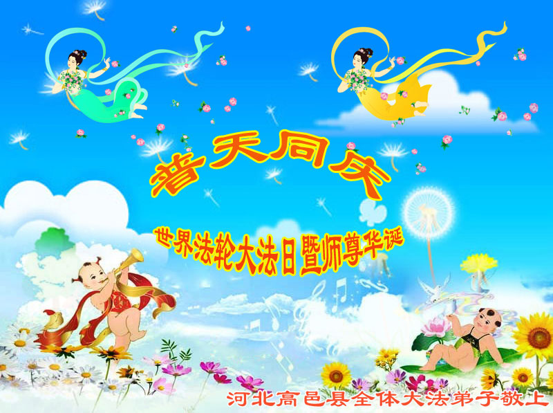 河北省石家庄高邑县全体大法弟子恭祝慈悲伟大的师尊生日快乐!庆祝世界法轮大法日!