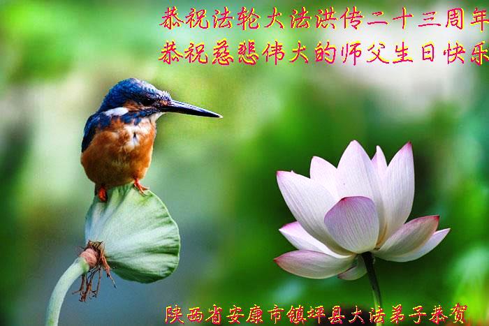 陕西省安康市镇坪县大法弟子恭祝慈悲伟大的师尊生日快乐!恭祝法轮大法日洪传二十三周年!