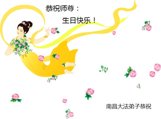 南昌大法弟子恭祝慈悲伟大的师尊生日快乐!庆祝法轮大法洪传二十三周年!