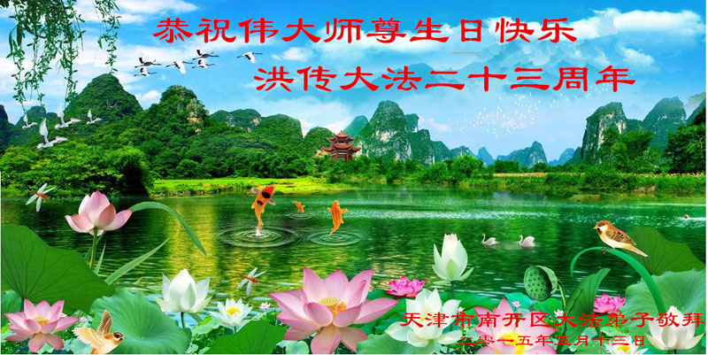 在剩下的时间里,我们要更加精進,努力做好三件事。 天津市南开区大法弟子恭祝伟大的师尊生日快乐!庆祝法轮大法洪传二十三周年!