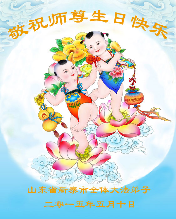 山东省泰安市新泰全体大法弟子恭祝师尊生日快乐!普天同庆法轮大法洪传二十三周年!