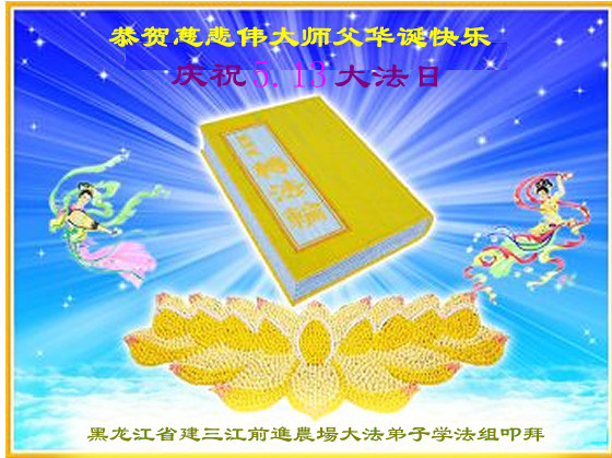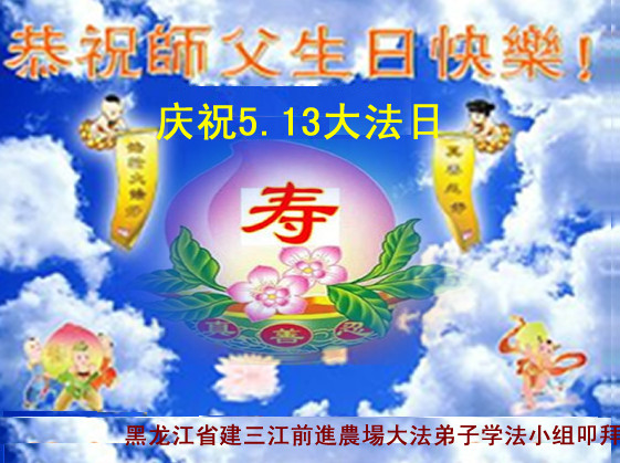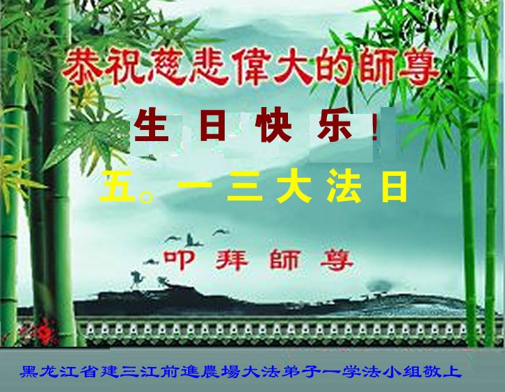 我一定要精進报答师父的慈悲救度,走好走正修炼路。 黑龙江省建三江前進农场全体大法弟子恭祝师尊生日快乐!庆贺5.13世界法轮大法日!