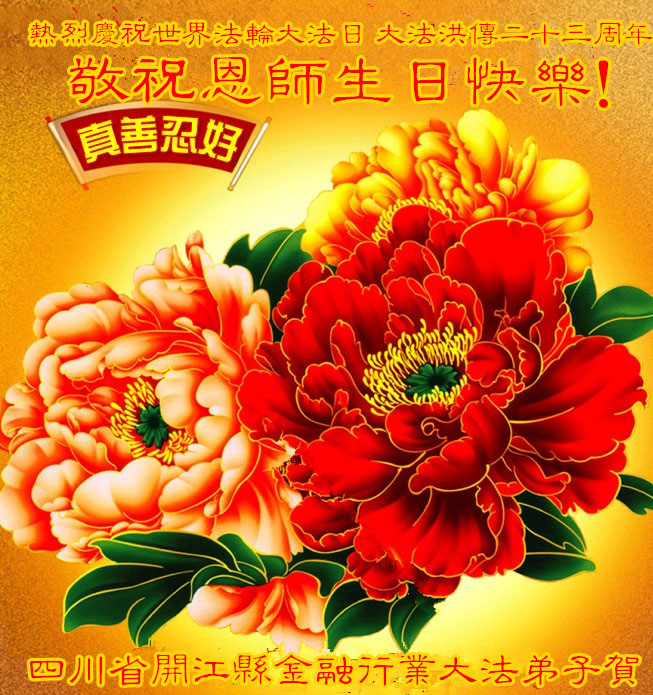 四川省开江县金融行业大法弟子热烈庆祝世界法轮大法日!大法洪传二十三周年!敬祝恩师生日快乐!
