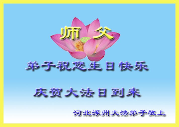 河北涿州大法弟子祝师尊生日快乐!庆贺大法日到来!