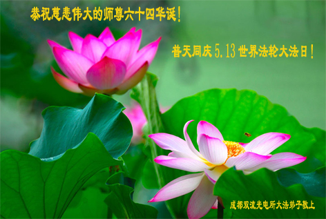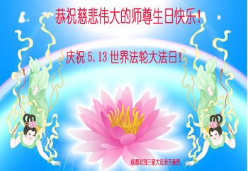 成都双流川棉大法弟子恭祝慈悲伟大的师尊生日快乐!庆祝世界法轮大法日!