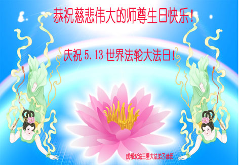 成都双流三星大法弟子恭祝慈悲伟大的师尊生日快乐!庆祝世界法轮大法日!
