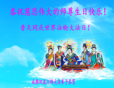 成都双流大林大法弟子恭祝师父生日快乐!普天同庆世界法轮大法日!