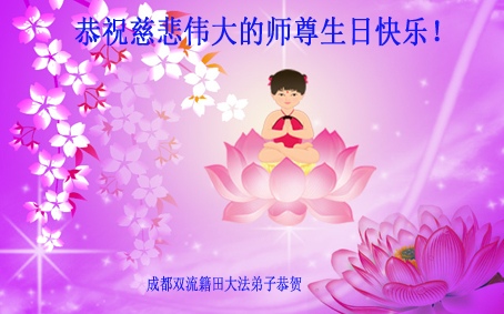 成都双流籍田大法弟子恭祝慈悲伟大的师尊生日快乐!