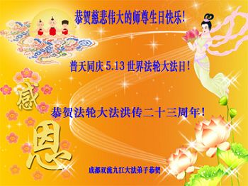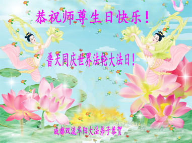 成都双流黄龙溪大法弟子恭祝师尊生日快乐!普天同庆世界法轮大法日!