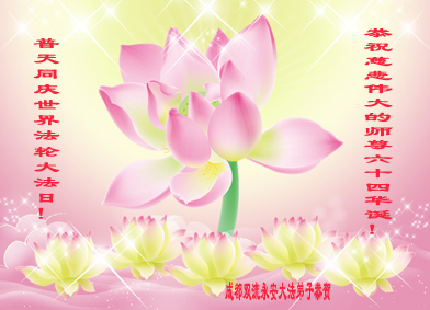 成都双流黄甲大法弟子恭祝慈悲伟大的师尊生日快乐!普天同庆世界法轮大法日!