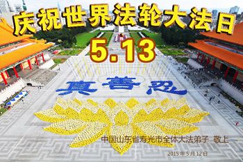 中国山东省潍坊市寿光市全体大法弟子庆祝世界法轮大法日!
