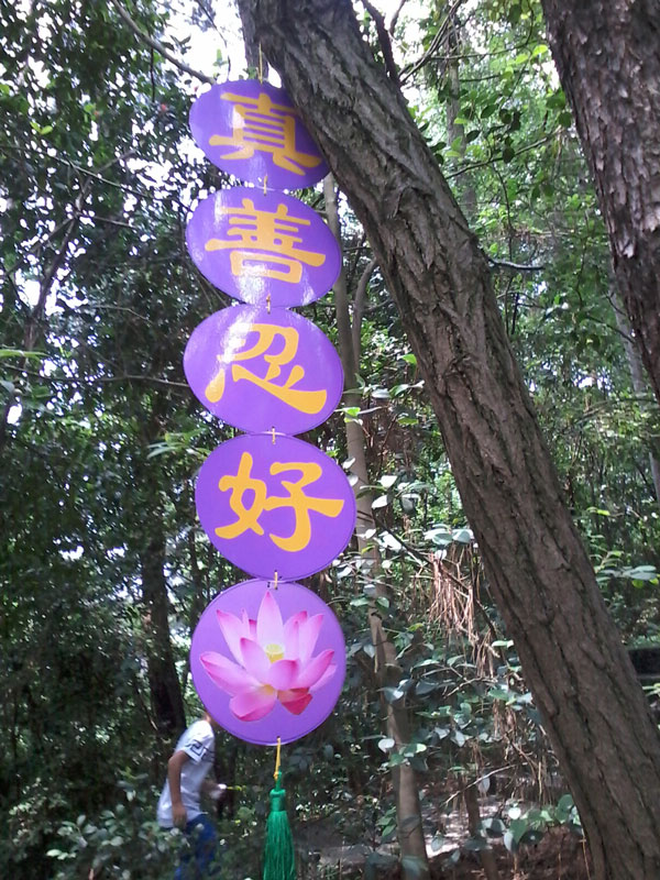 河南省巩义市五名法轮功学员(高凤舞、白新颖、崔素萍、宋进州、杨秀英),5月25日去北京最高检察院递交对迫害元凶江泽民的“刑事控告书”。由于在东交民巷27号每天早上七点半对告状的民众发号,每天限制一定数量的号,发完就没了,五位学员没排上发号,最后在邮局用挂号信,把对江泽民的“刑事控告书”寄到最高检察院,同时杨秀英给最高法院寄了“刑事控告书”。 6月1日,贵州一公园内出现“法轮大法好”、“真善忍好”条幅