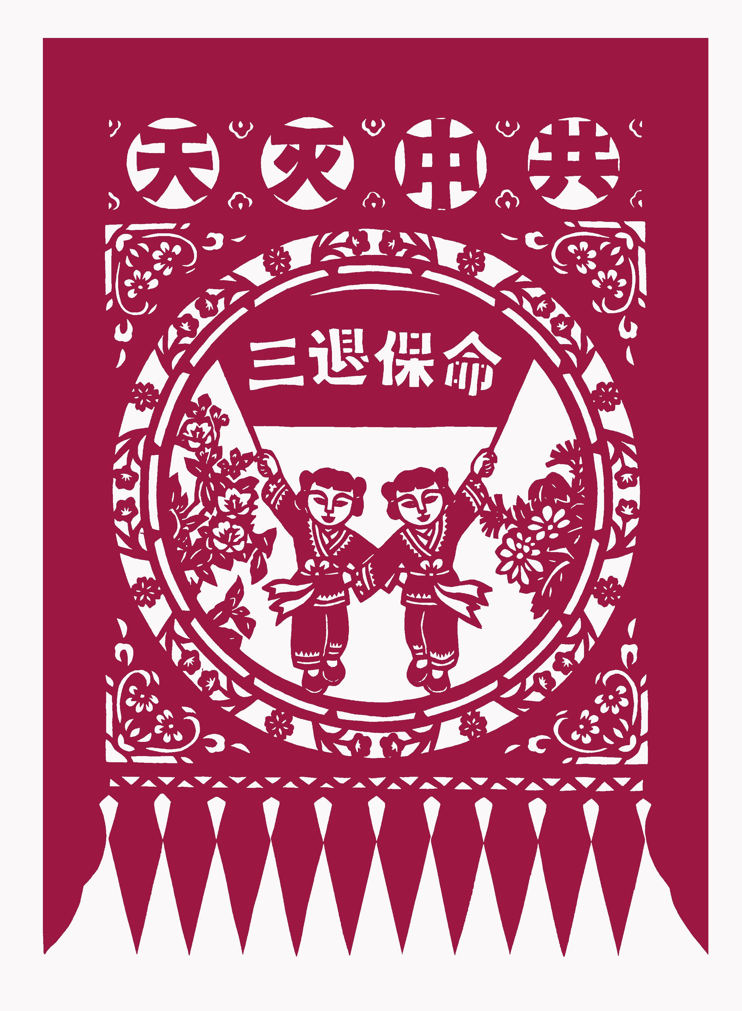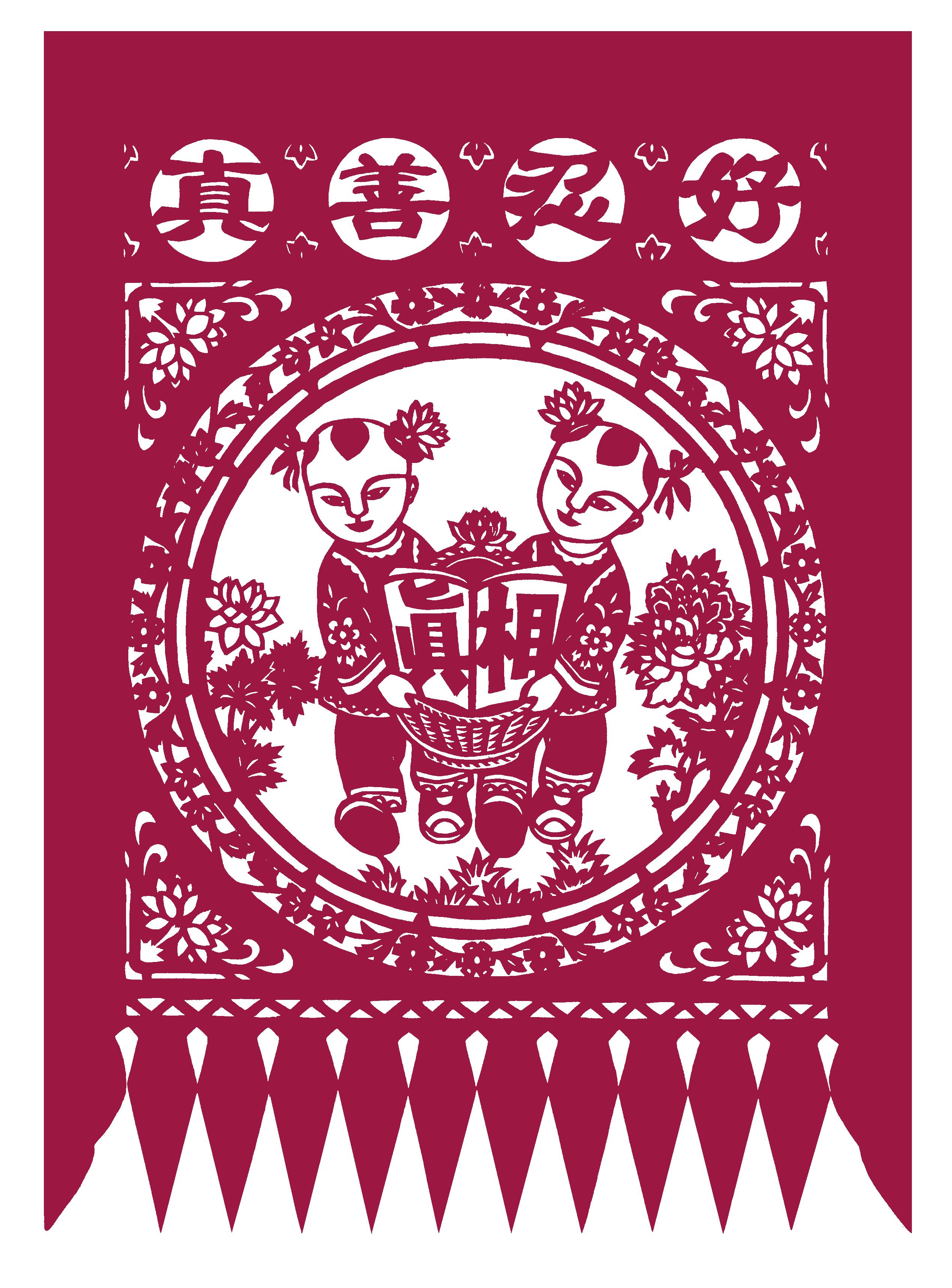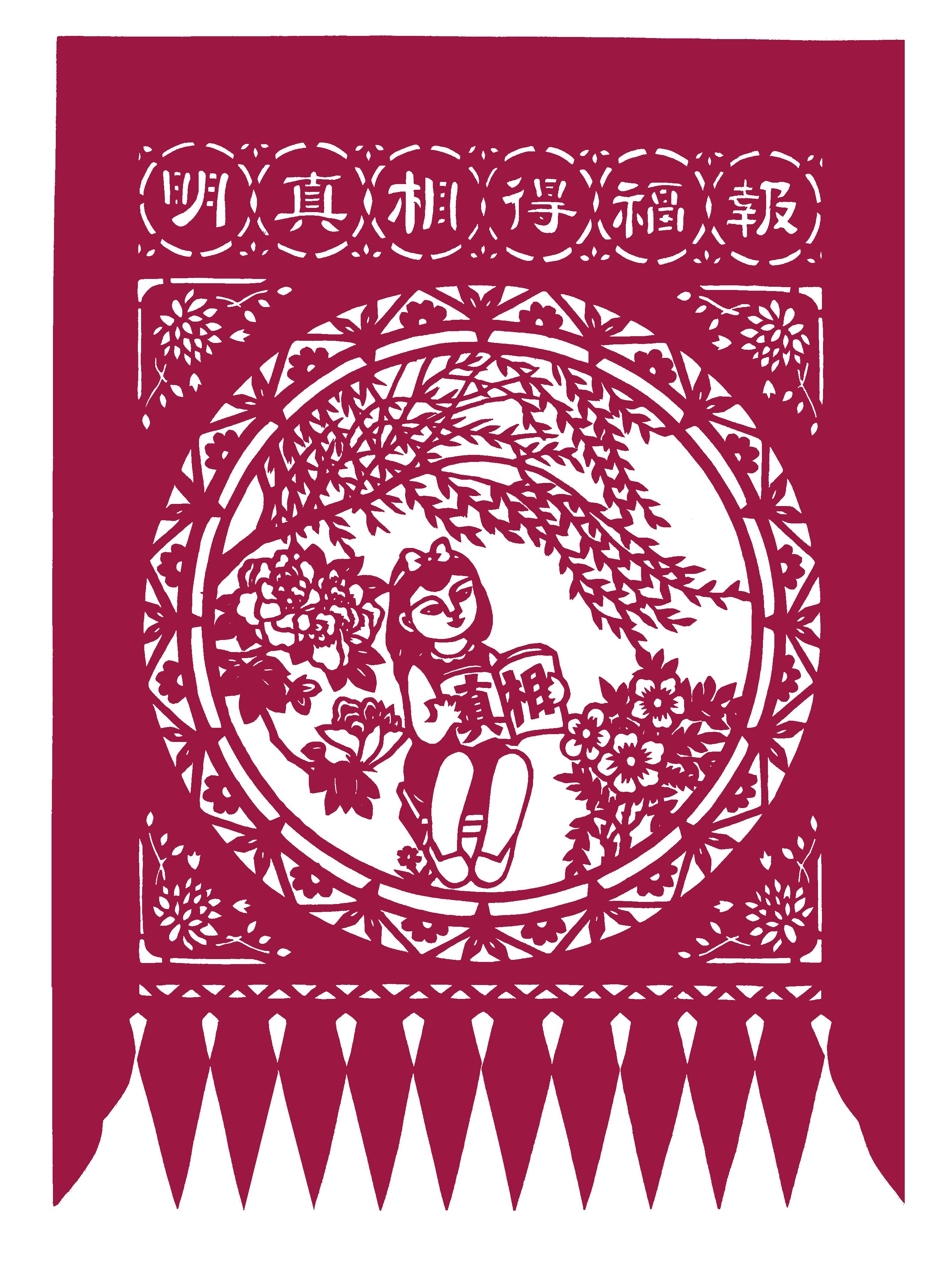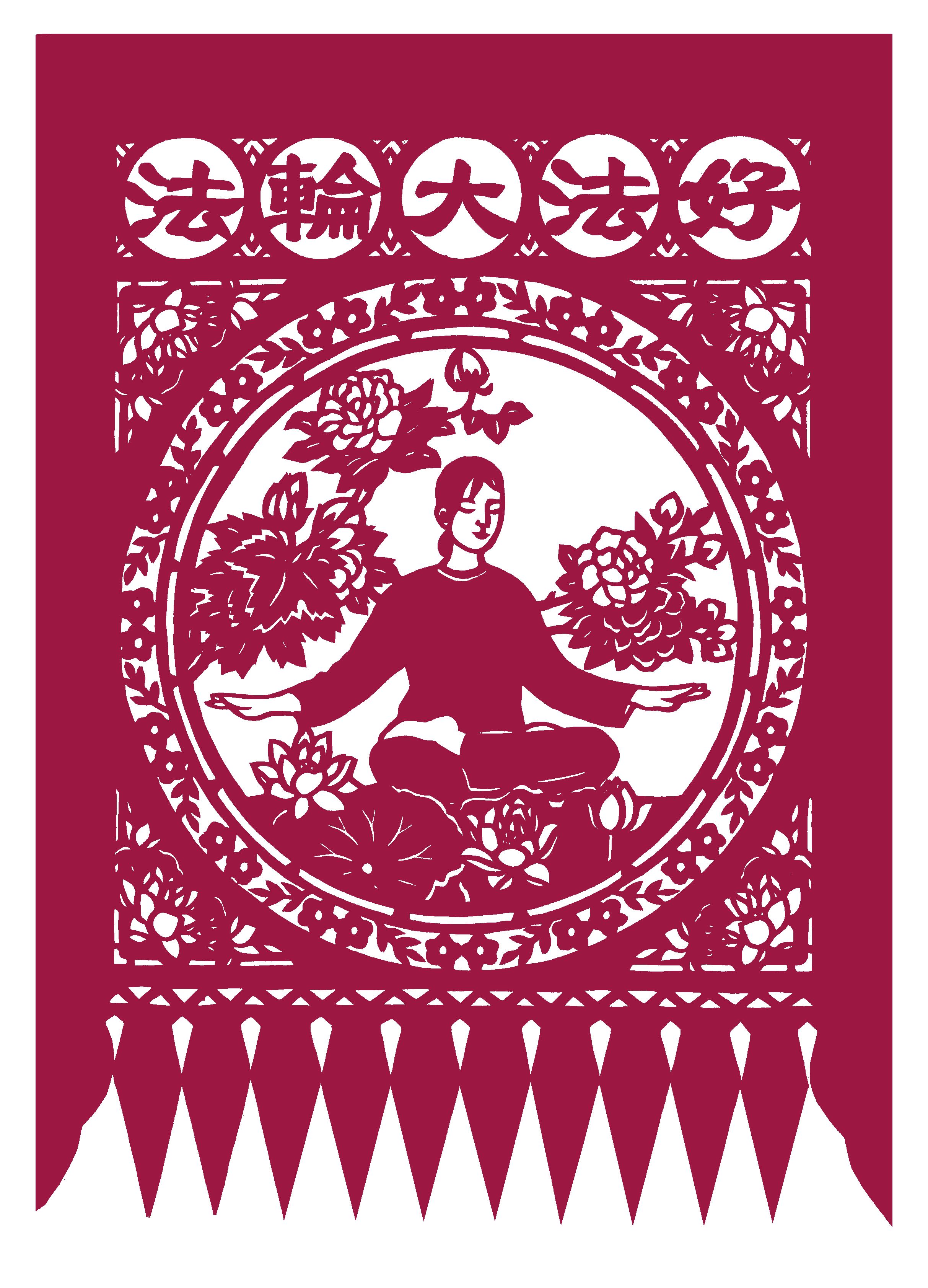 【明慧网二零一五年七月十一日】剪纸内容:法轮大法好,真善忍好,明真相得福报,天灭中共,三