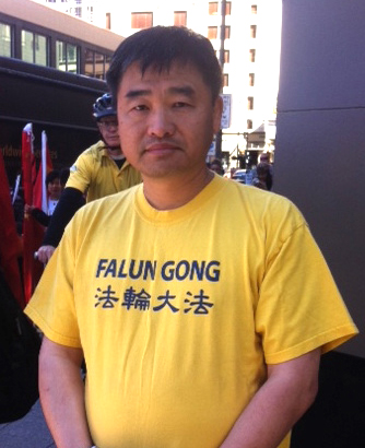 路透社报道说,在西雅图市中心,支持法轮功的人群说,他们在中国受到迫害。他们手持横幅反对活摘器官行径。 西雅图三十八岁的迈克尔•格林(Michael Green)说:“法轮功学员在中国被关进监狱、劳教所和精神病院,他们被活摘器官后而死亡。” 《国际商业时报》报道,二十二日清晨,在习*近*平准备下榻的西雅图维斯汀酒店(Westin Hotel)外,几十名法轮功学员已经在那里。他们举着的中英文横幅上写着:活摘法轮功学员器官天理难容。 报道说,据大英百科全书上说,一九九九年,中共政权迫害法轮功,抓捕法轮功学员,并将他们监禁长达十几年。有些学员死于被关押期间。 《西雅图陌生人》(The Stranger)周报记者Sydney Brownstone采访了在西雅图市中心参加活动的几位法轮功学员。  图3:来自圣荷西的电脑工程师苏南 |